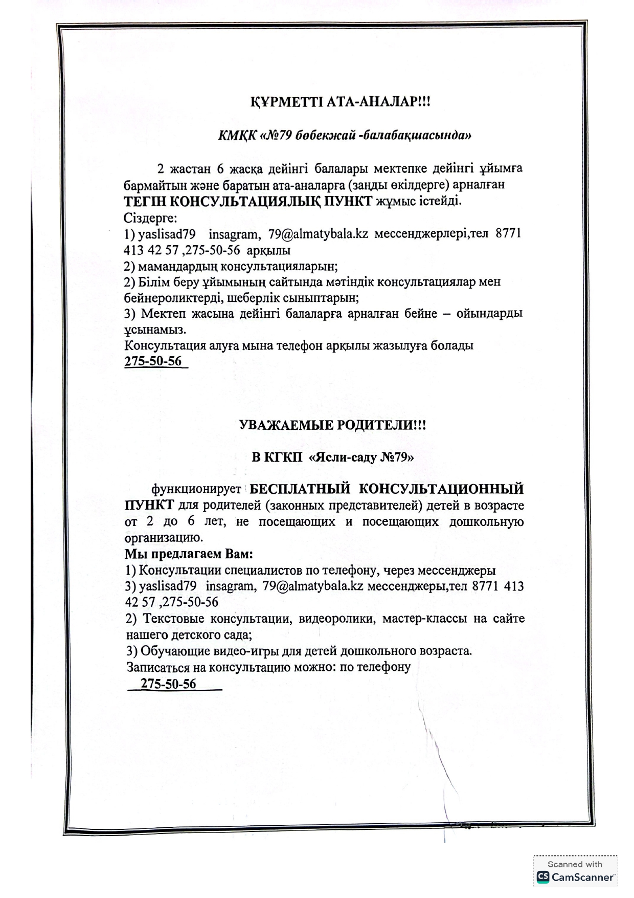 03 қыркүйек 2025 0 1 2 3 4 5 Құрметті ата-аналар!! КМҚК "№79 бөбекжай-балабақшасында"Тегін Консультациялық пункт жұмыс жасайды
