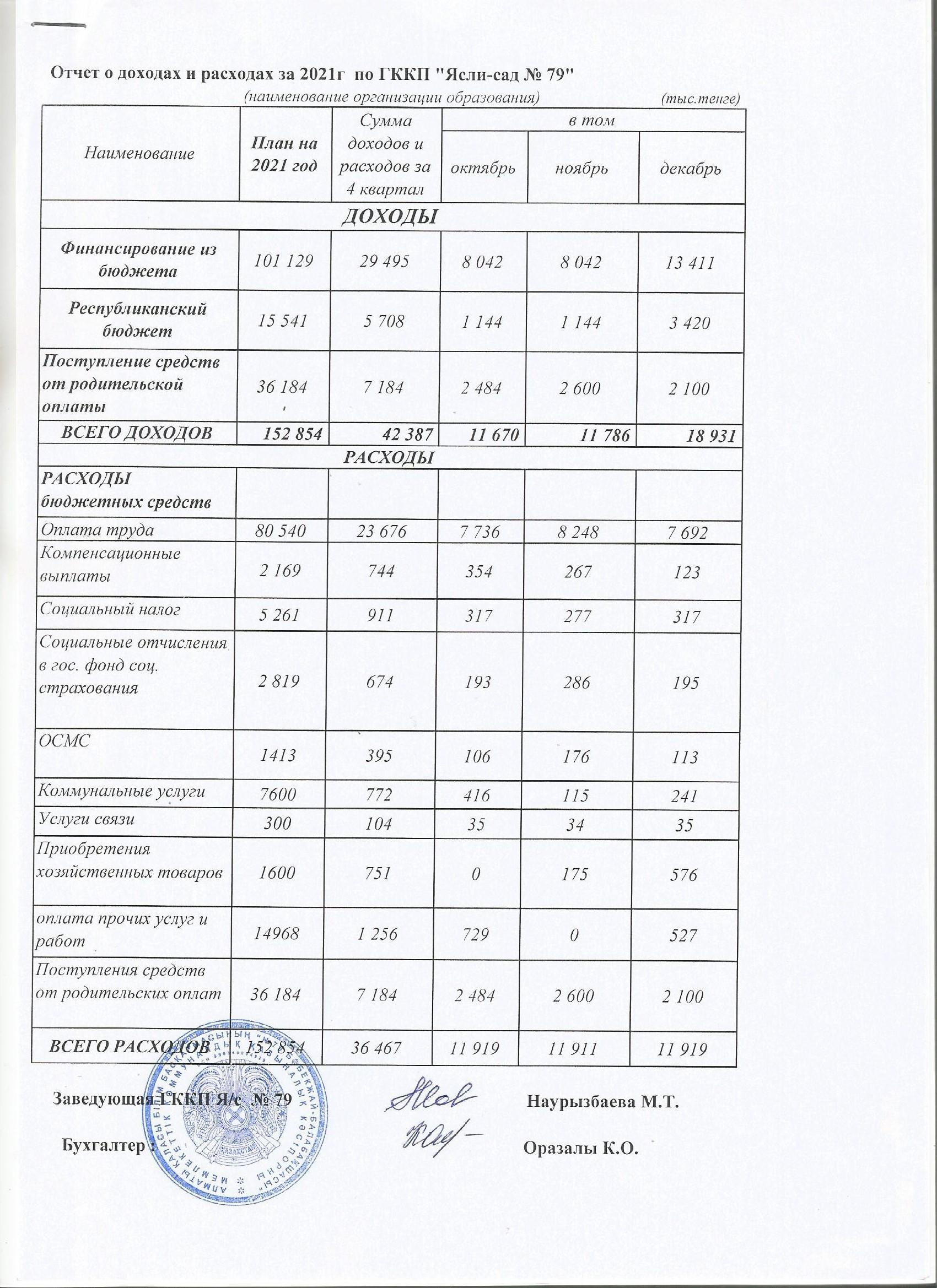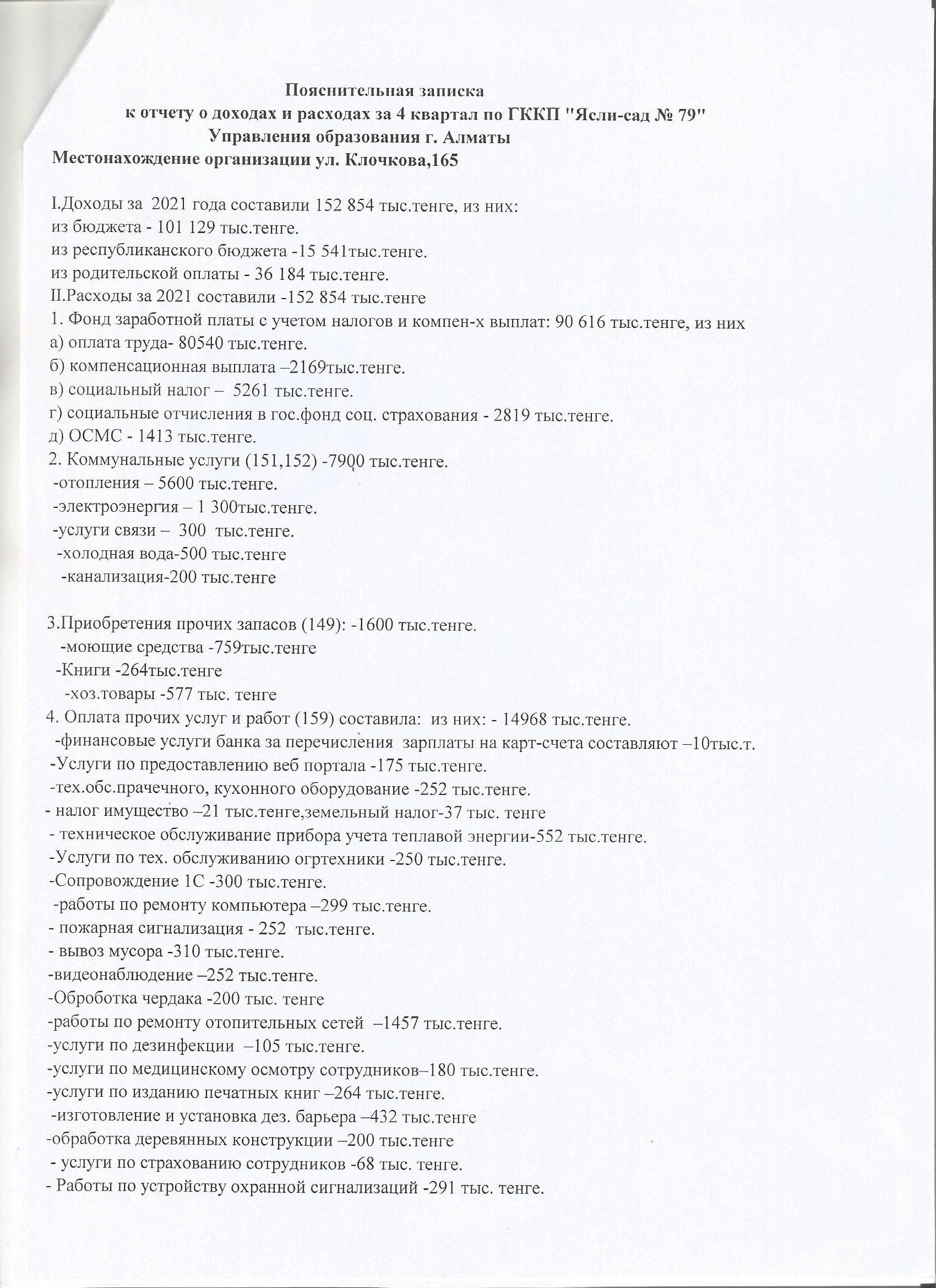 2021 жылдың Кіріс және шығыс есебі » КГКП "Ясли сад №79"