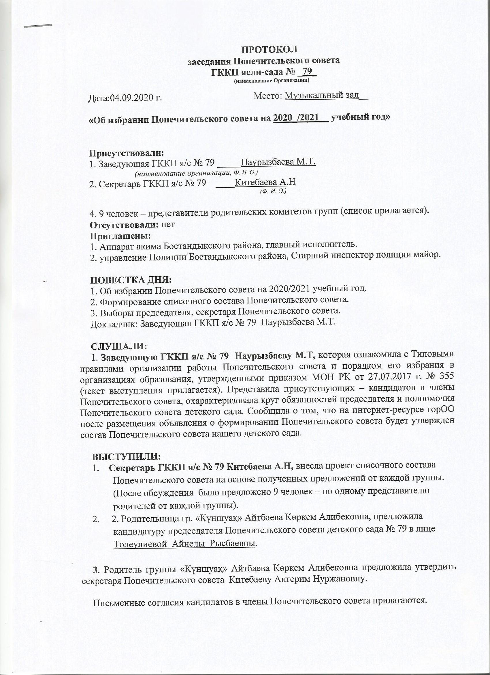 Протокол 2020 год » КГКП "Ясли сад №79"