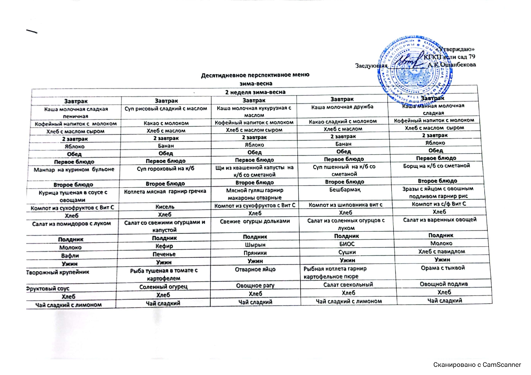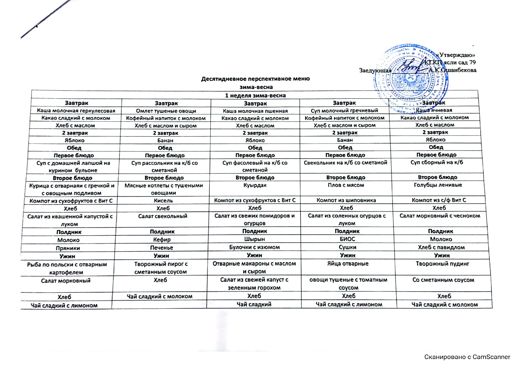 "Десятидневное перспективное меню" Зима-Весна » КГКП "Ясли сад №79"